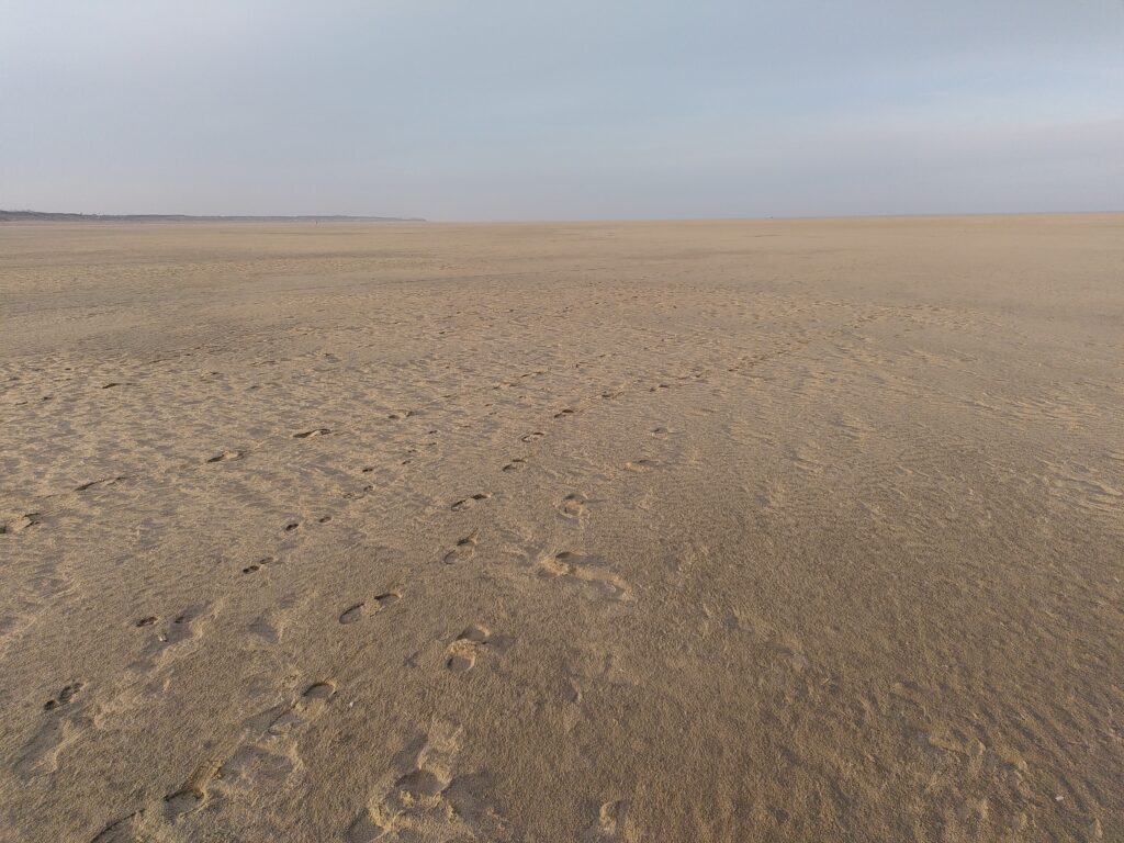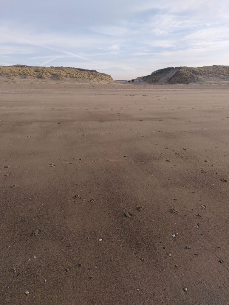 De volgende dag vertrok ik rond kwart over negen voor de laatste wandeling. Weer een mooie zonnige dag met een heerlijke wandeling op het ontzettend brede strand bij Ouddorp. Je waant je bijna in een woestijn, zeker in de ochtend als er nog niet veel andere strandgangers zijn. Onderweg kwam ik het grappige strandvogeltje de drieteenstrandloper regelmatig tegen langs de kustlijn. Na bijna 8 kilometer strand-struinen was daar dan het eindpunt: het Vrijheidsduin(pad), naast strandpaal 16 waar een mooie boodschap* in het zand stond voor…. iedereen!