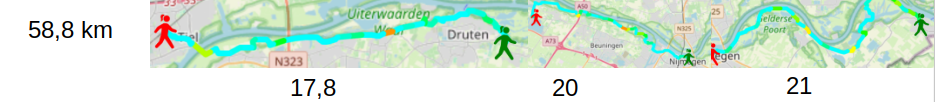 De tweede dag, bewolkt en een stuk frisser, vertrok ik vanuit Nijmegen, de wandeling die dag eindigde vlak voor het plaatsje Deest. Met de bus ging ik terug richting Nijmegen voor de overnachting. Dag 3 met de bus naar Afferden voor de laatste wandeling van etappe 1, die eindigde op station Tiel.