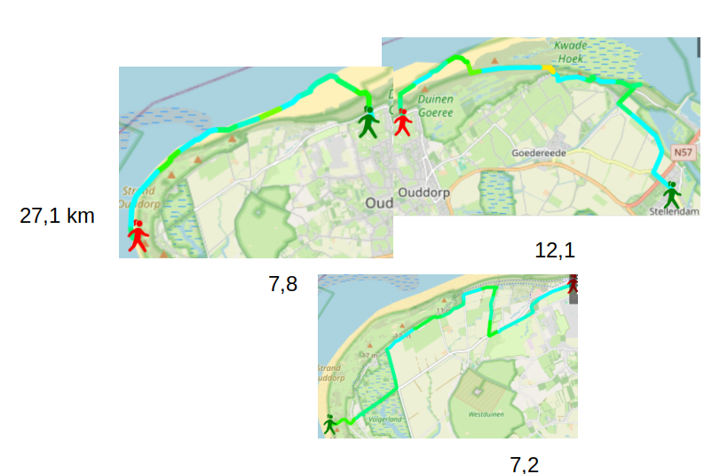 Hieronder de laatste etappe, het onderste stukje met de 7,2 kilometer was de wandeling terug naar Ouddorp om daar weer op de bus te stappen.