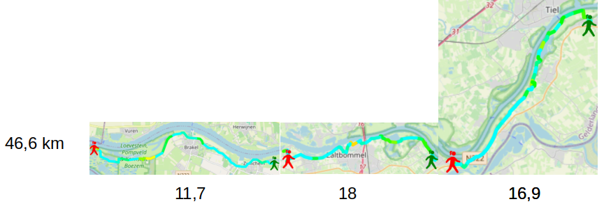 De drie wandelingen van etappe 2 van Wamel naar Loevestein.